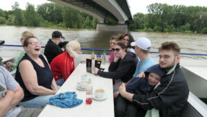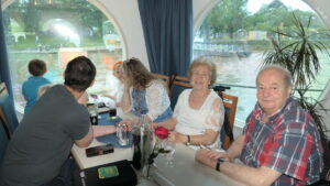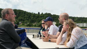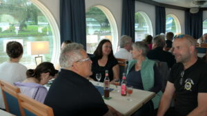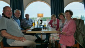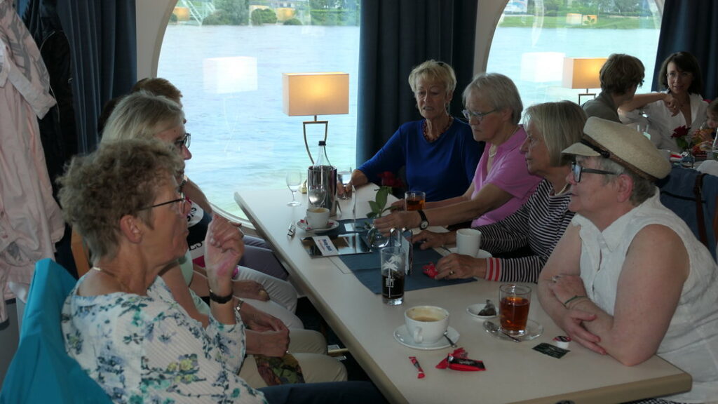 Wieder verteilten sich die Mitreisenden auf den Decks und genossen die deutlich kürzere Rückreise bei Getränken und Gesprächen. Um 18:00 Uhr legten wir pünktlich in Bonn an.