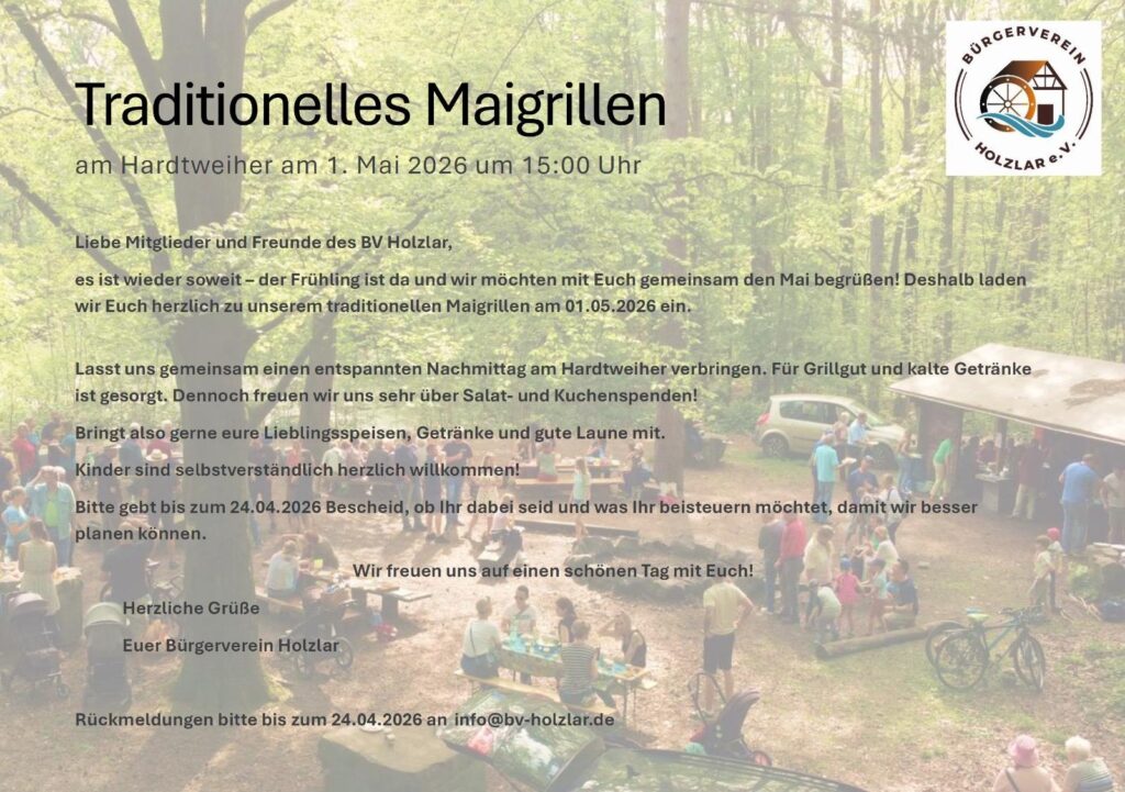 es ist wieder soweit – der Frühling ist da und wir möchten mit Euch gemeinsam den Mai begrüßen! Deshalb laden wir Euch herzlich zu unserem traditionellen Maigrillen