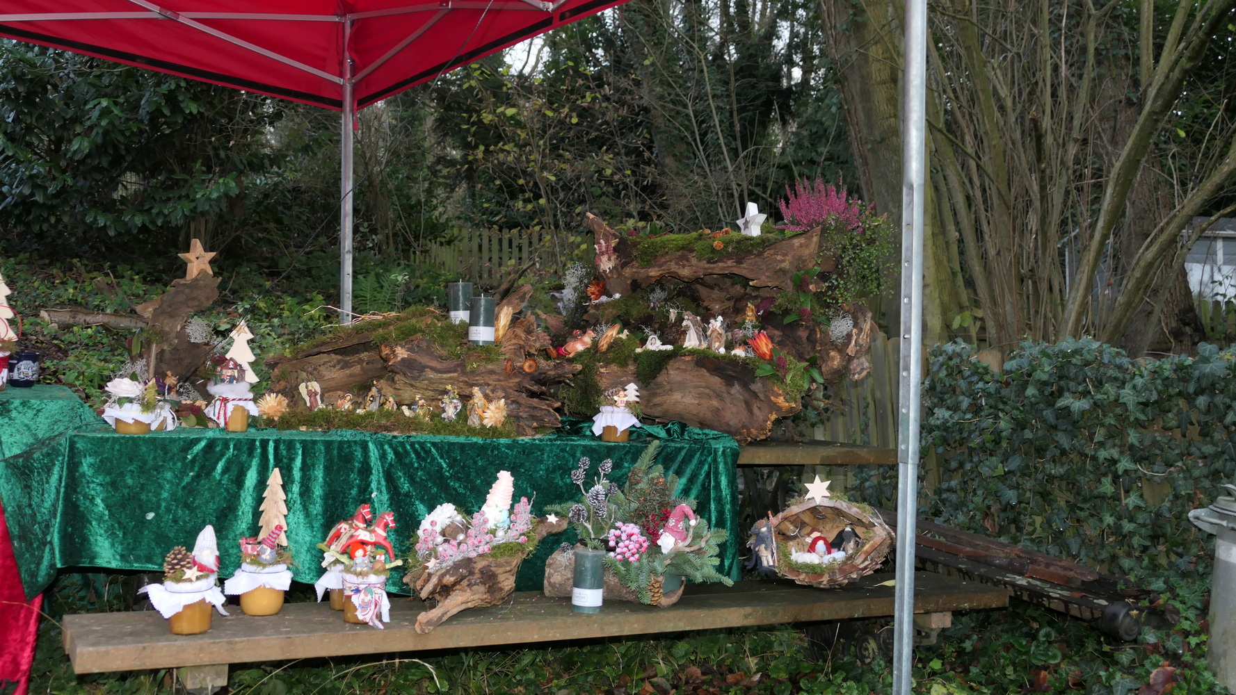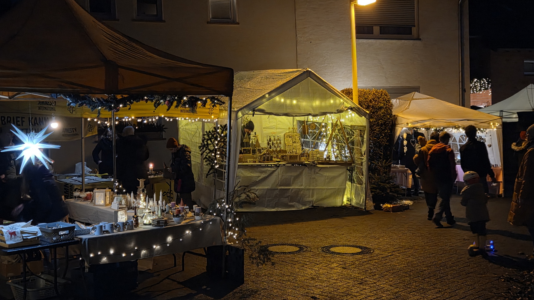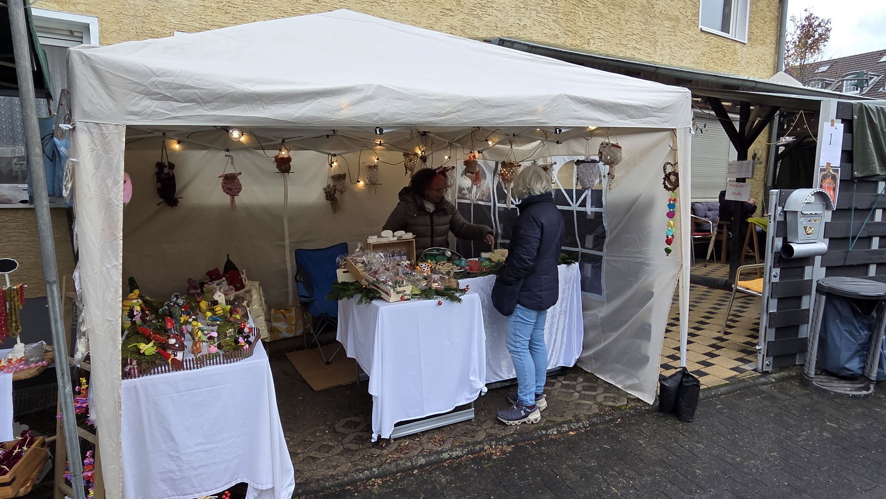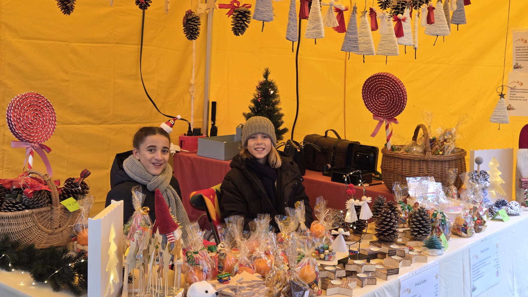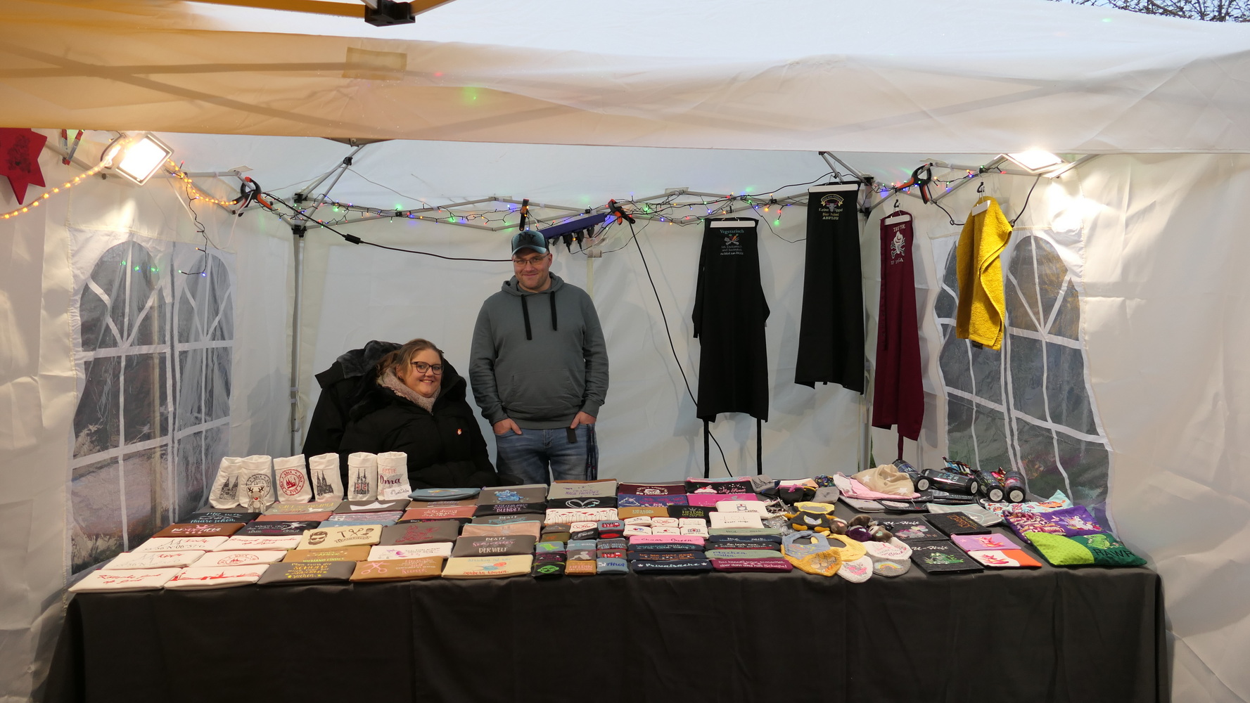 Fast 40 Aussteller präsentierten in ihren Zelten und in der Mühle handgefertigtes Kunsthandwerk, kreative Bastelarbeiten und vielfältige weihnachtliche Dekorationen. Neben stilvollem Modeschmuck und Accessoires waren Acrylbilder, Kerzen, köstliches Weihnachtsgebäck, Olivenöl, Bio-Honigprodukte, gebrannte Mandeln, selbst gemachte Liköre und weitere saisonale Spezialitäten im Angebot. Die Anbieter kamen aus der Region und luden dazu ein, lokale Produkte zu entdecken und zu unterstützen. Am Stand des BV Holzlar gab es auch in diesem Jahr wieder den Holzlarer Familien- und Veranstaltungskalender zu kaufen. Die Waldfee zeigte handgefertigte Krippen aus Naturmaterialien; außerdem war Amnesty International mit einem Stand vertreten.
