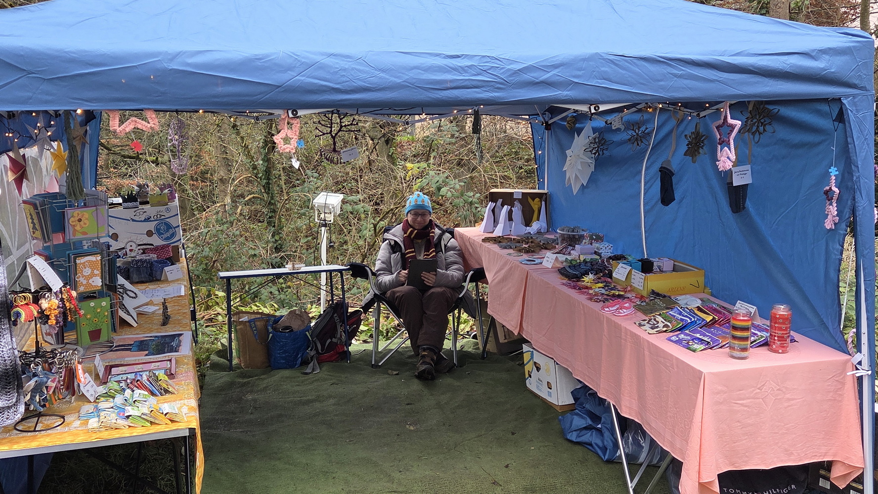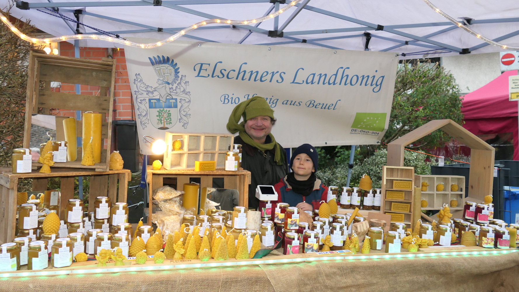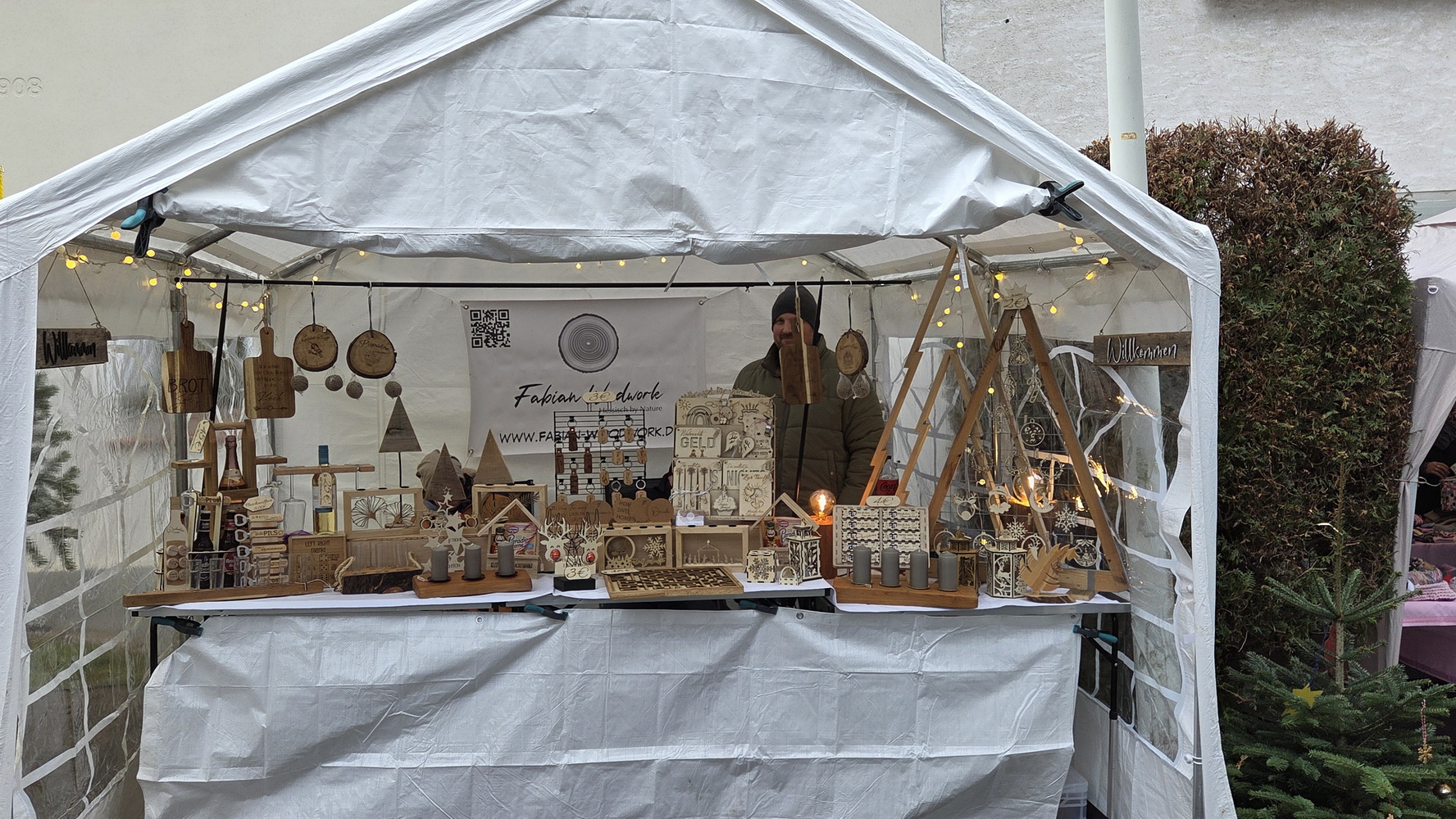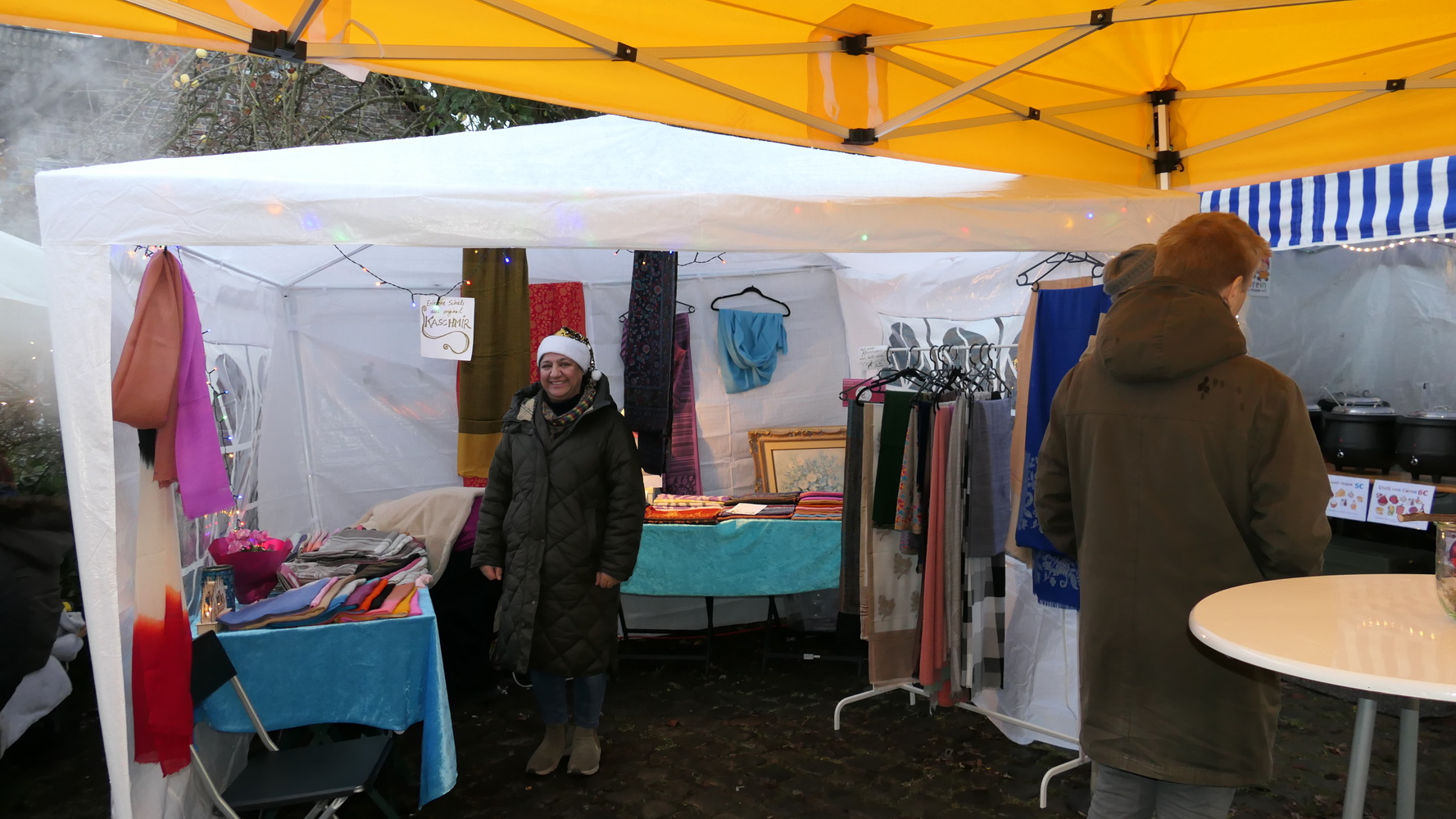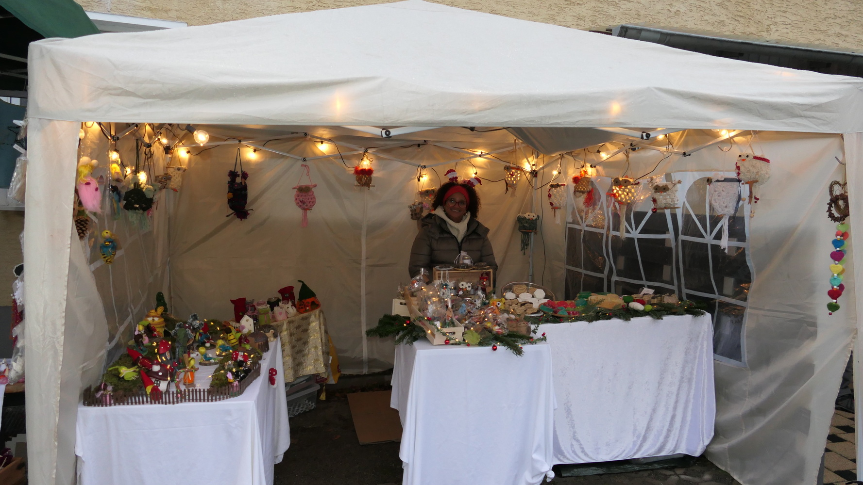 Fast 40 Aussteller präsentierten in ihren Zelten und in der Mühle handgefertigtes Kunsthandwerk, kreative Bastelarbeiten und vielfältige weihnachtliche Dekorationen. Neben stilvollem Modeschmuck und Accessoires waren Acrylbilder, Kerzen, köstliches Weihnachtsgebäck, Olivenöl, Bio-Honigprodukte, gebrannte Mandeln, selbst gemachte Liköre und weitere saisonale Spezialitäten im Angebot. Die Anbieter kamen aus der Region und luden dazu ein, lokale Produkte zu entdecken und zu unterstützen. Am Stand des BV Holzlar gab es auch in diesem Jahr wieder den Holzlarer Familien- und Veranstaltungskalender zu kaufen. Die Waldfee zeigte handgefertigte Krippen aus Naturmaterialien; außerdem war Amnesty International mit einem Stand vertreten.