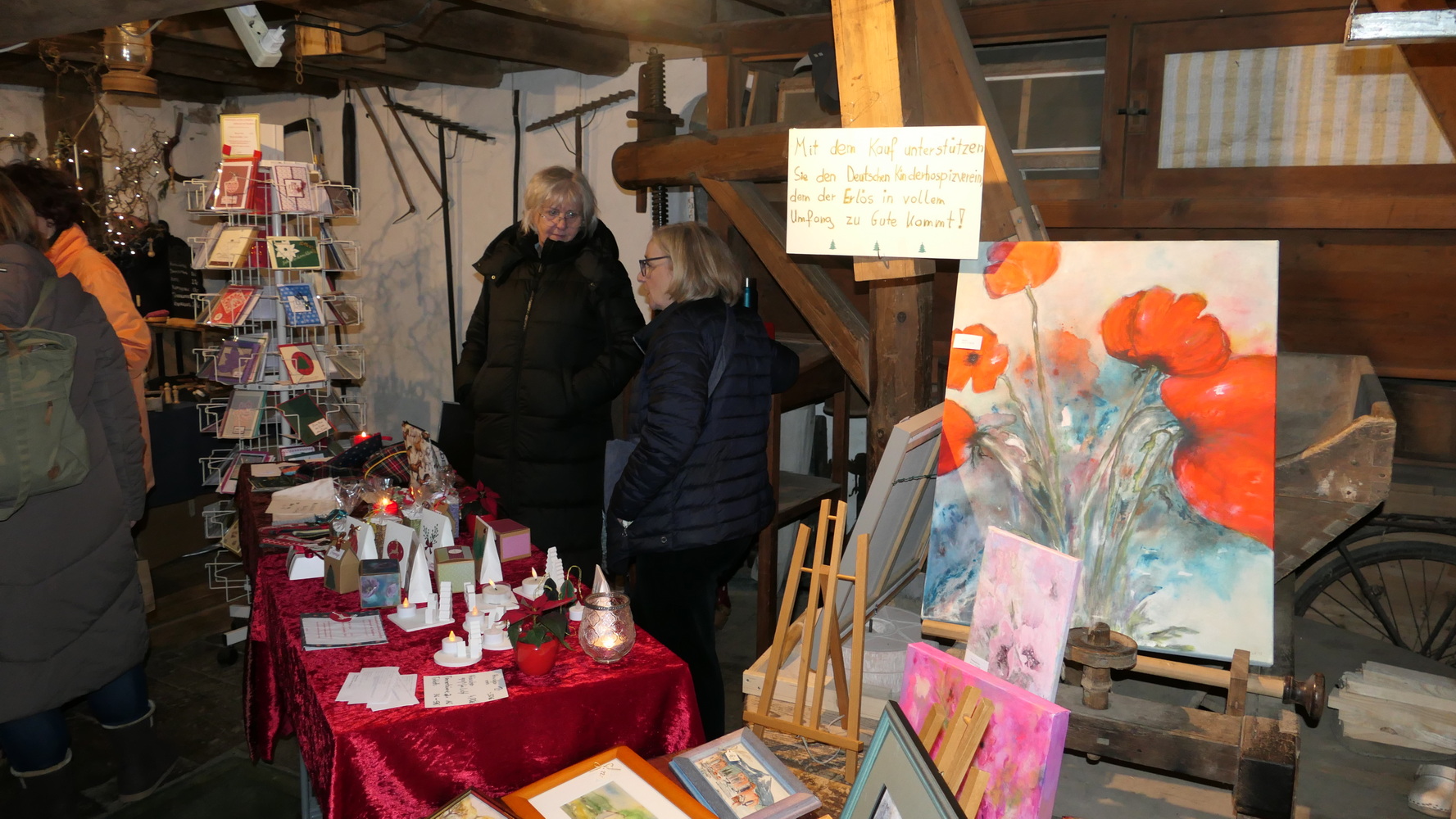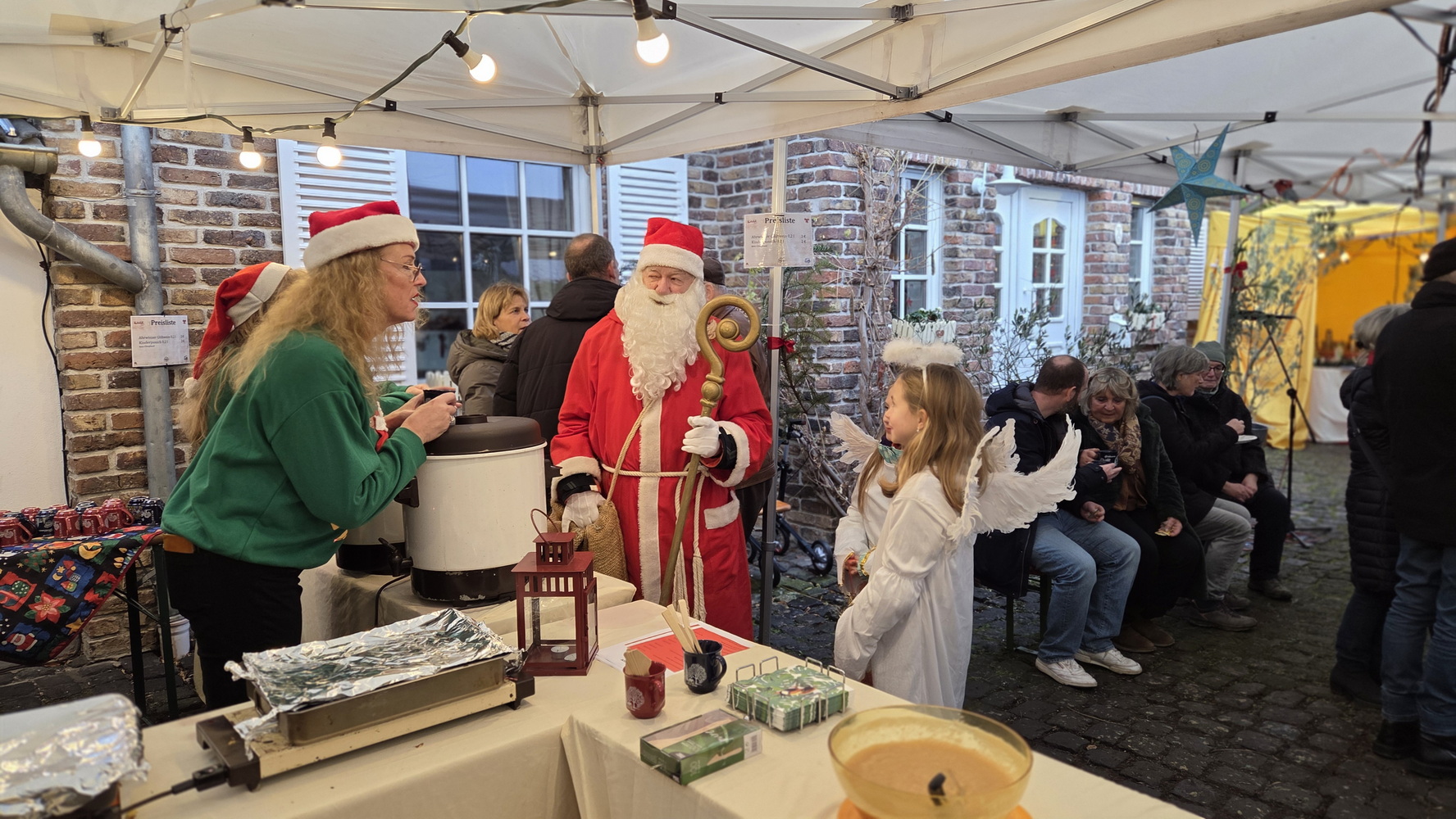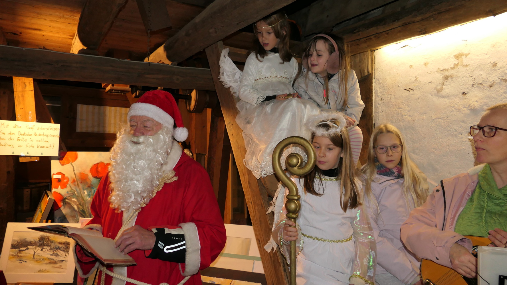 Die Unterhaltung für die ganze Familie war vielfältig: Es wurden Weihnachtsgeschichten für Jung und Alt vorgelesen, und der lebendige Adventskalender präsentierte sich in der alten Mühle. Unter anderem sorgten der katholische Kinderchor und ein Bläserensemble mit festlichen Liedern für besinnliche Stimmung. Der Höhepunkt für die kleinen Gäste war der Besuch des Nikolaus mit zwei Engelchen – kein Kind ging ohne kleines Geschenk und ohne Foto mit dem Nikolaus nach Hause.